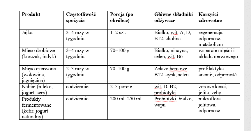Produkty pochodzenia zwierzęcego są bogate w wysoko przyswajalne formy białka, witamin i minerałów, które w diecie roślinnej mogą być trudniejsze do uzyskania w odpowiedniej ilości czy biodostępności.
